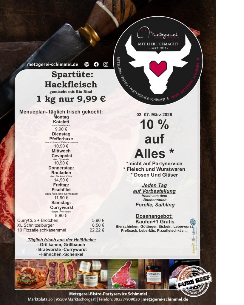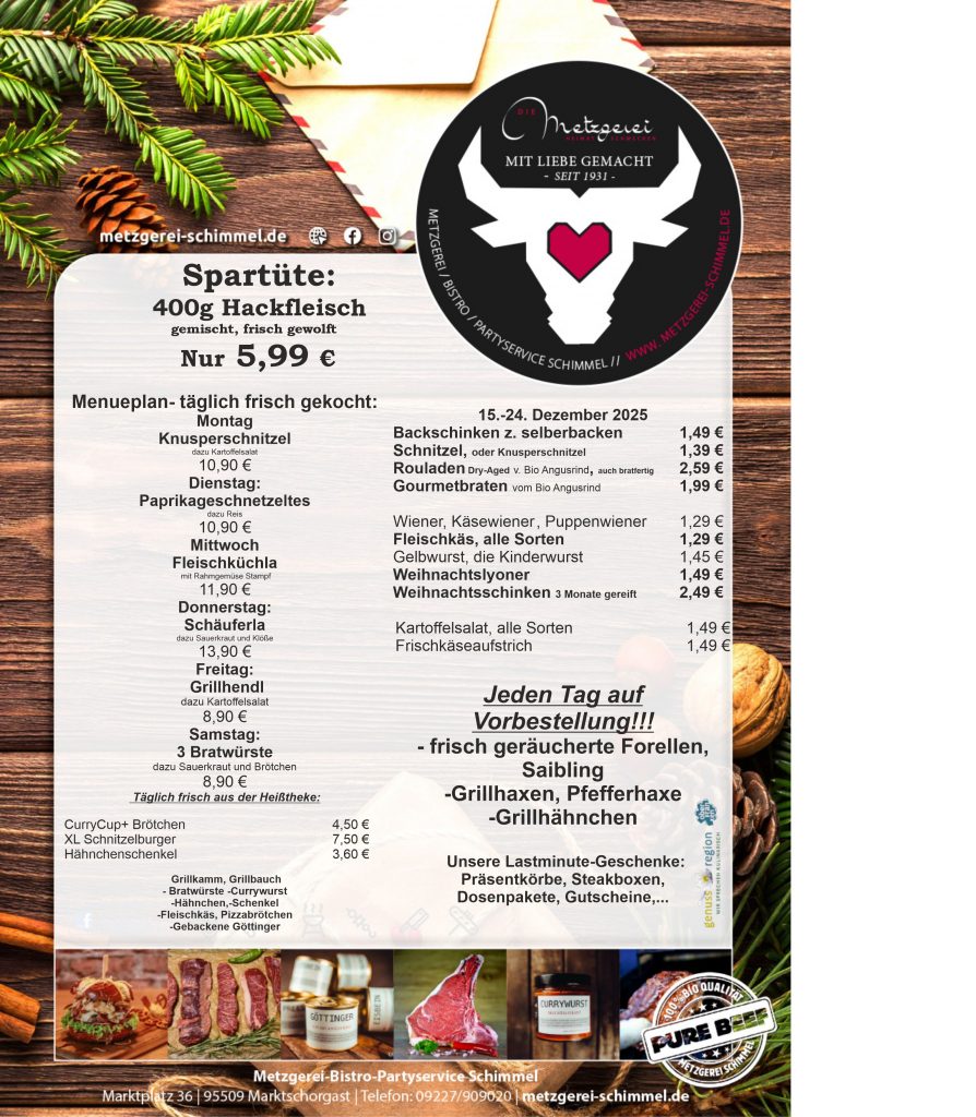 Hier finden Sie unsere wöchentlich wechselnden Angebote auf unserer Wochenkarte aus unserer Metzgerei und unserer Heißtheke auf unserer Wochenkarte